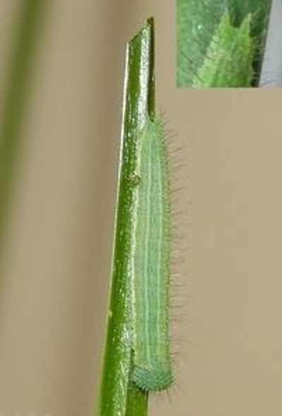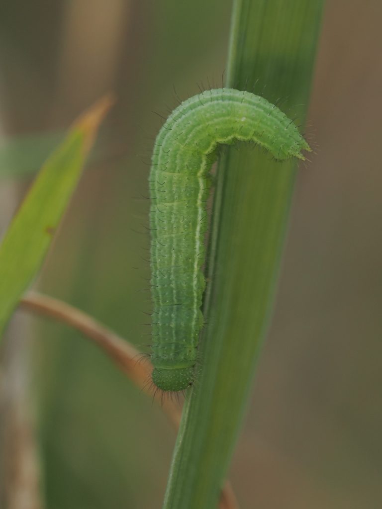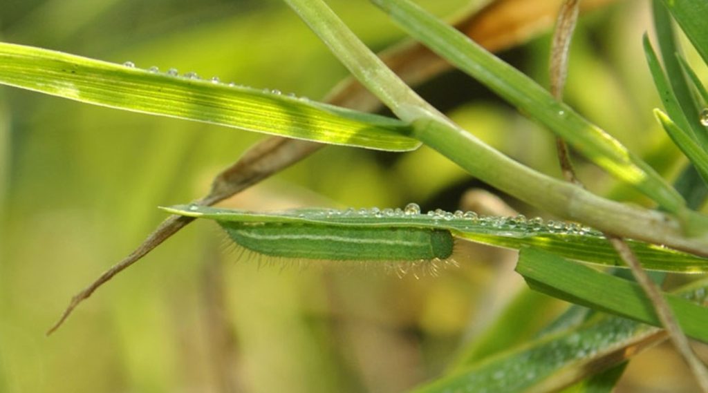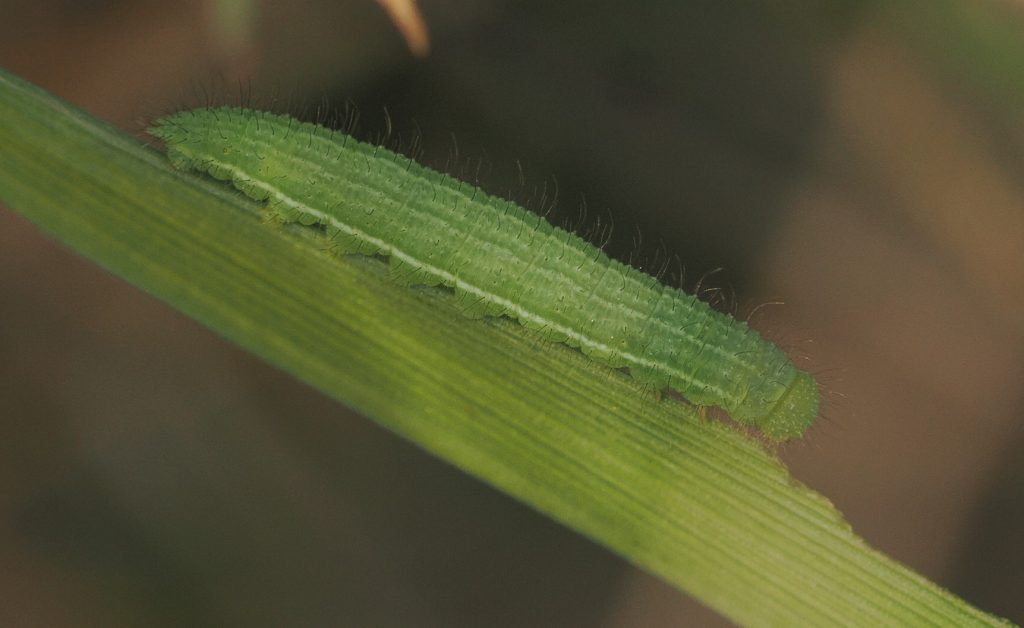 Eerst zoek je naar vraatsporen, vervolgens kijk je dieper op die plek. Daarmee vind je ook rupsen die niet actief zijn. Als het wat warmer is en de rupsen actief zijn , klimmen ze wat hoger in het gras.